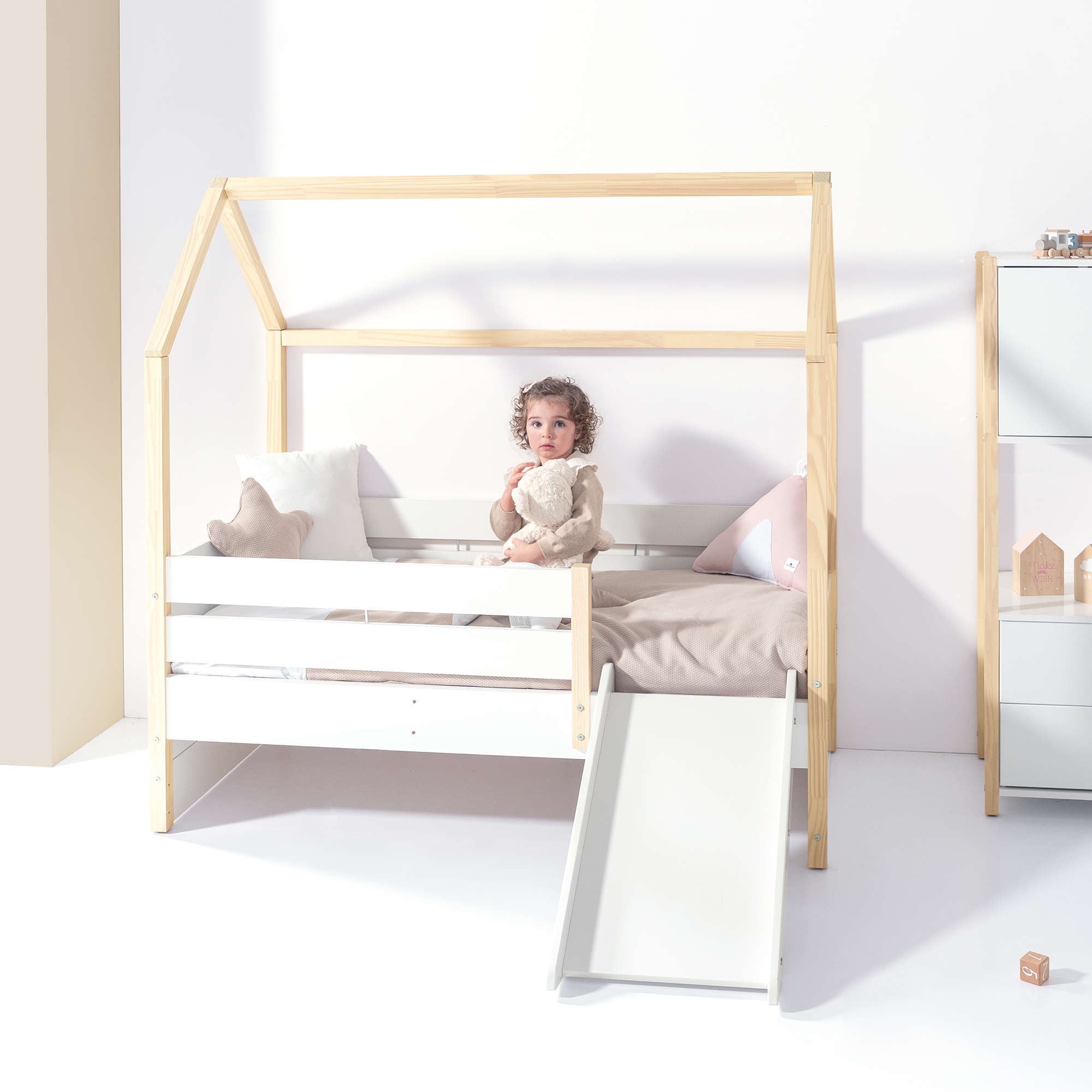 Letto-cassetta Montessori 70x140 cm legno/bianco · Sogni NB1400