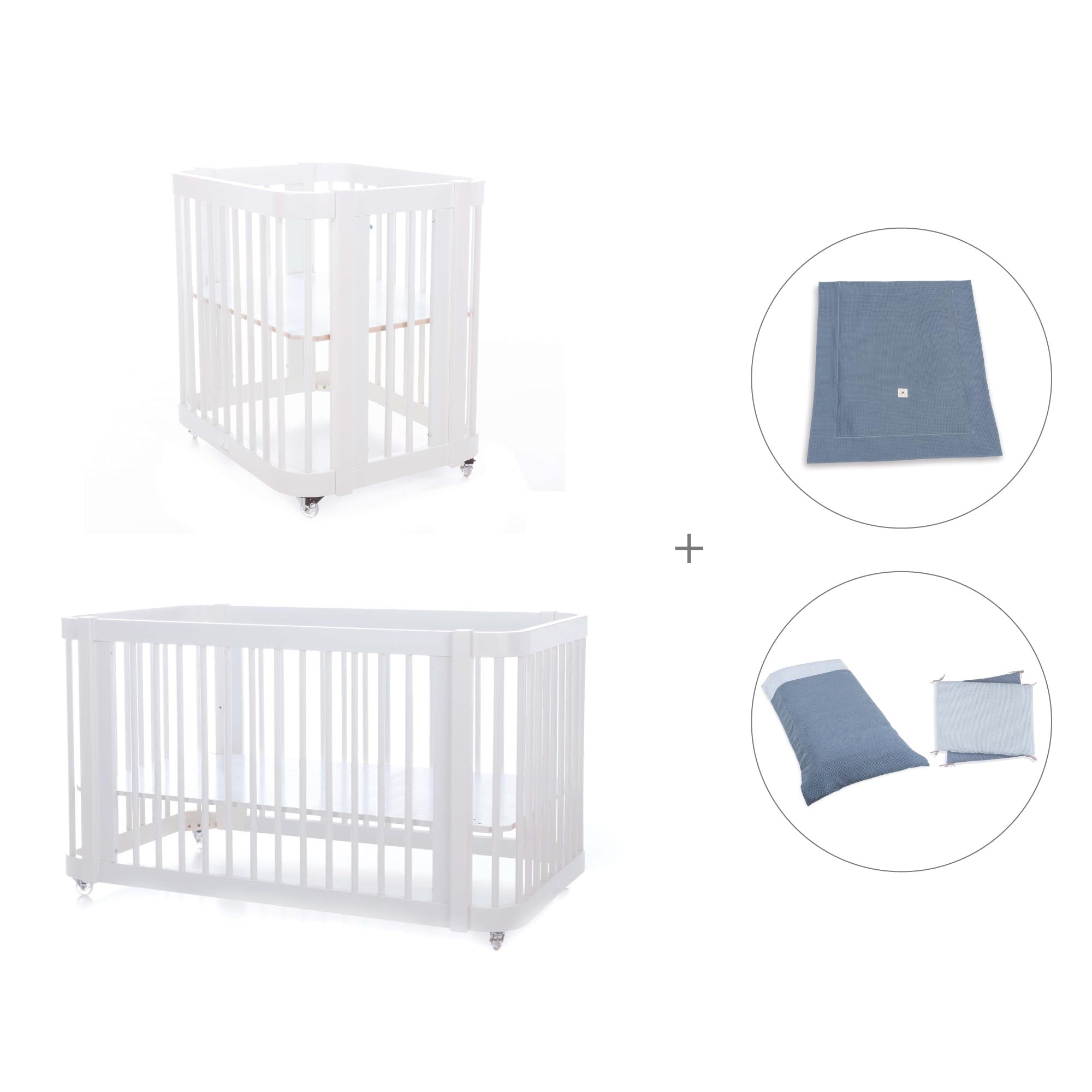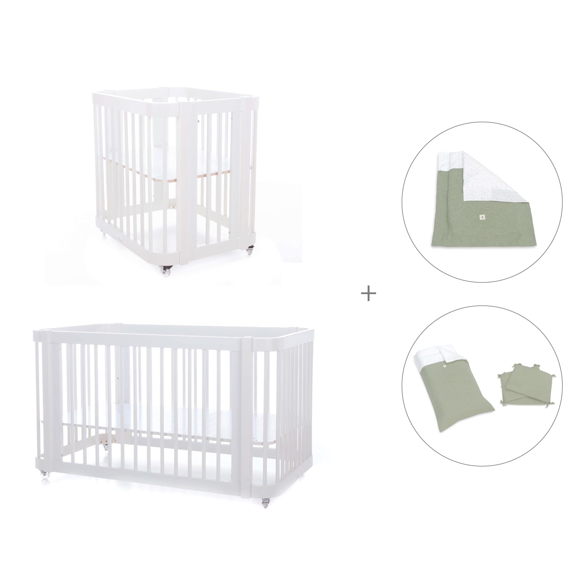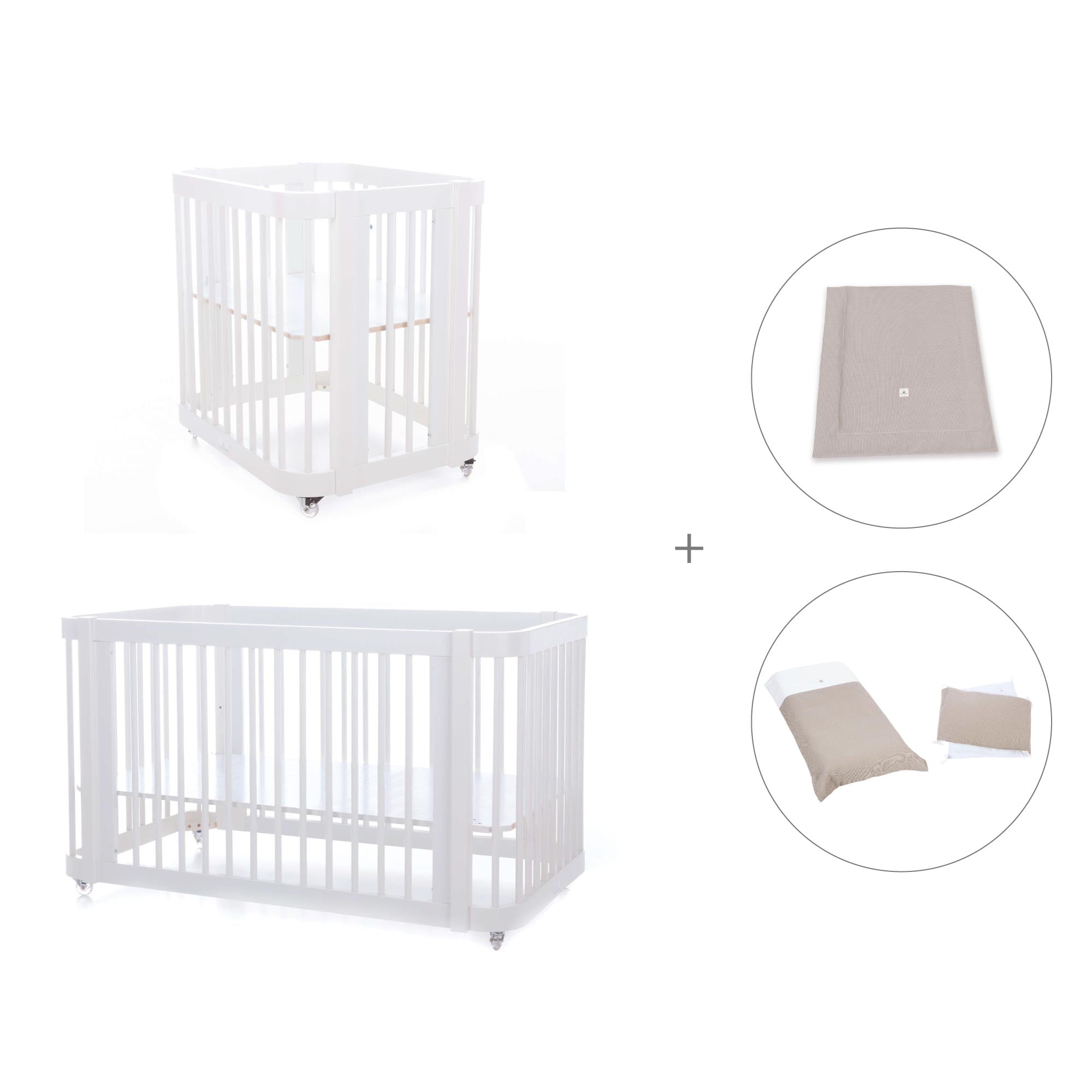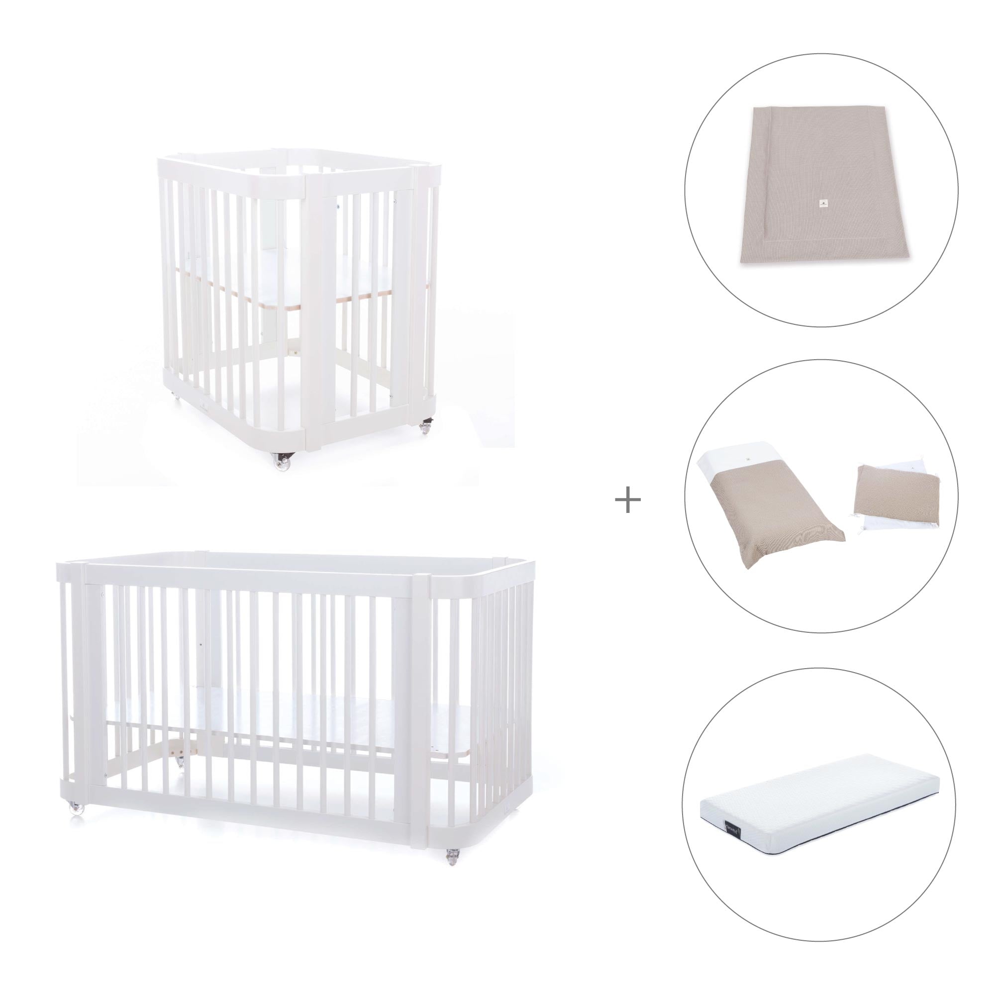 Durante i primi mesi del neonato, puoi utilizzare Crea Tre assemblata nella fase culla, semplicemente aggiungendo le due rotaie più piccole e la base della mini culla (inclusa).