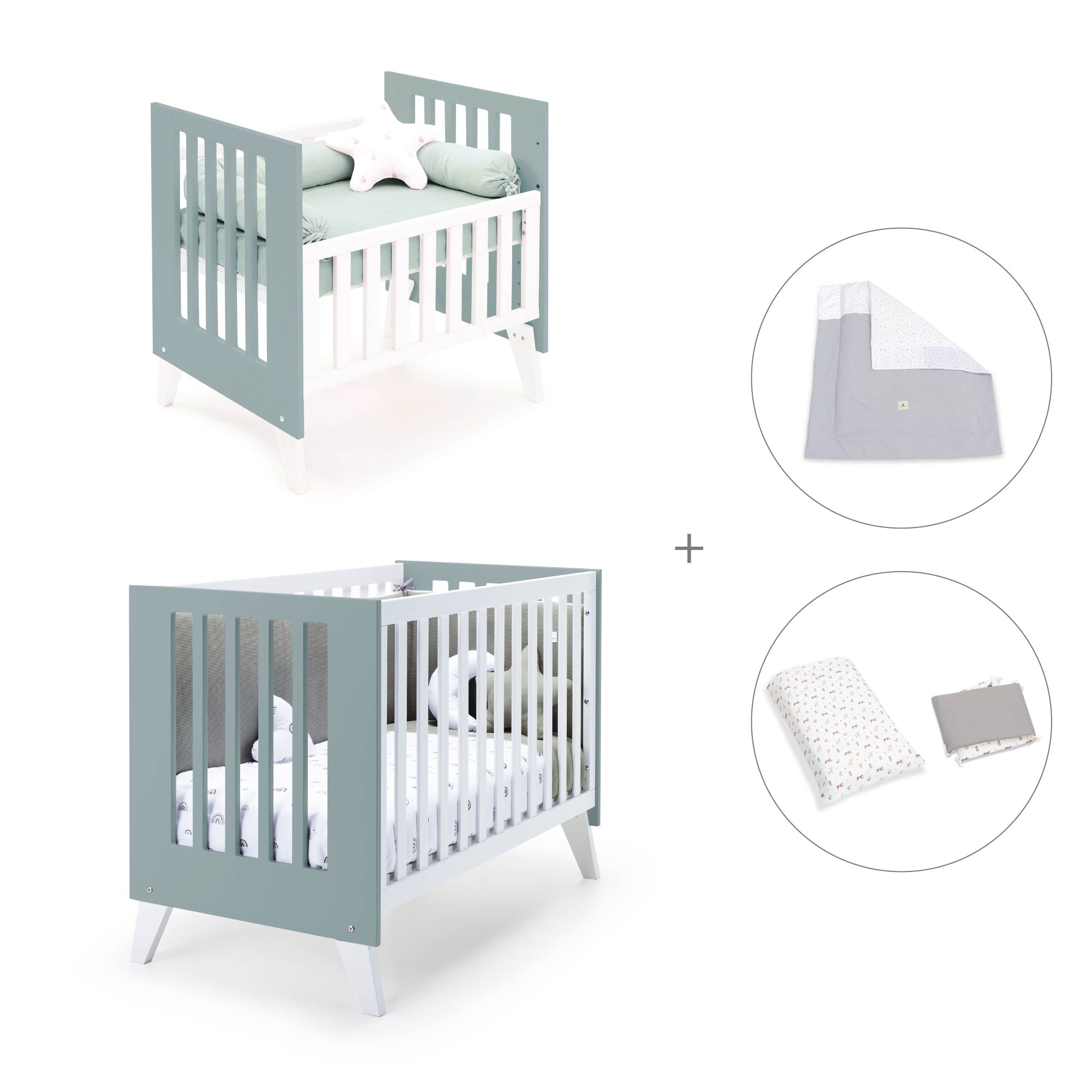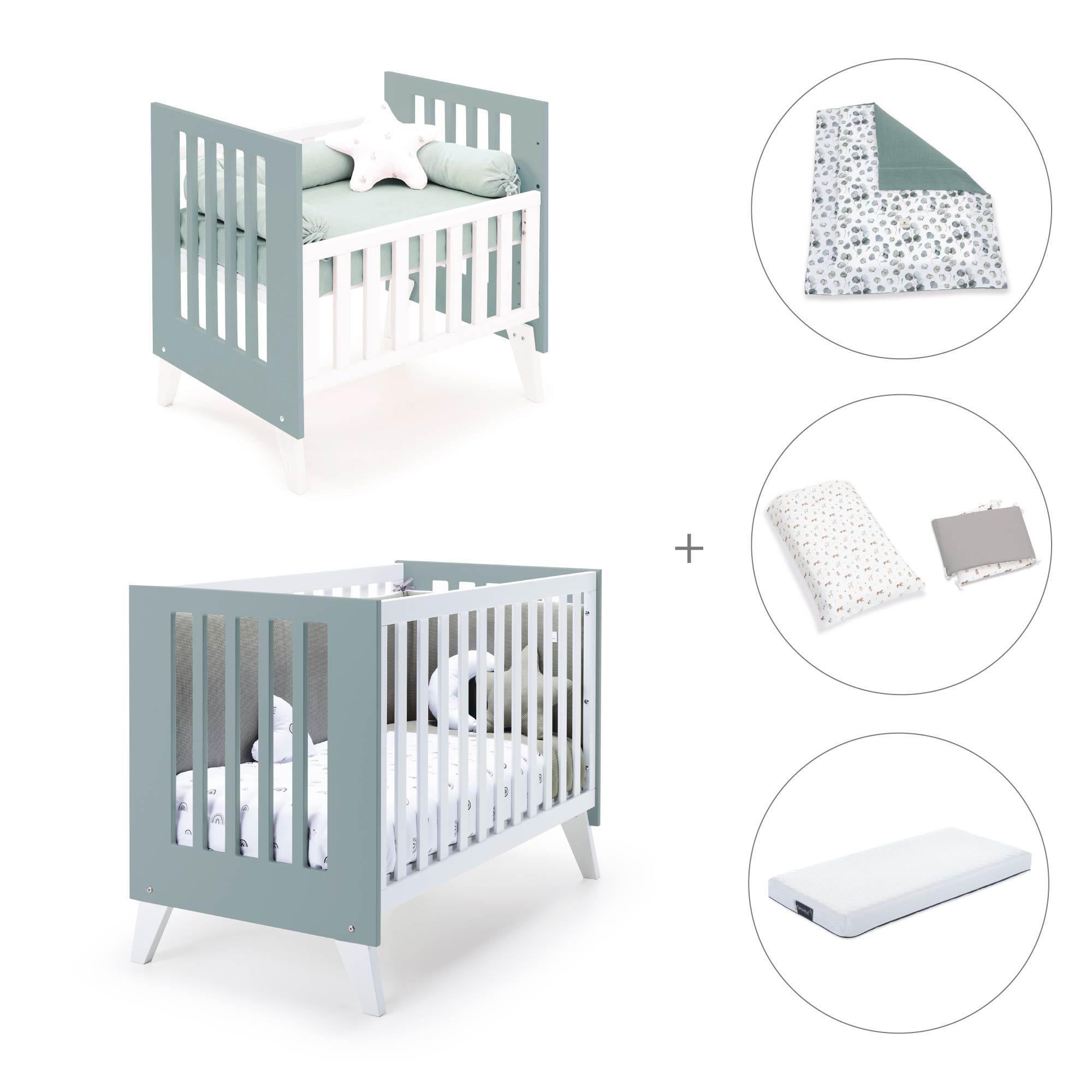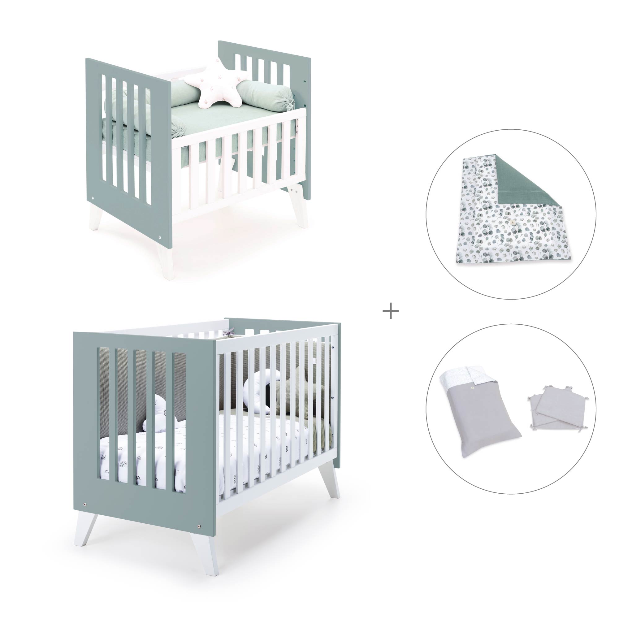 Culla e lettino insieme (7in1) bianco/verde eucalipto · Nexo Tre Eucalyptus