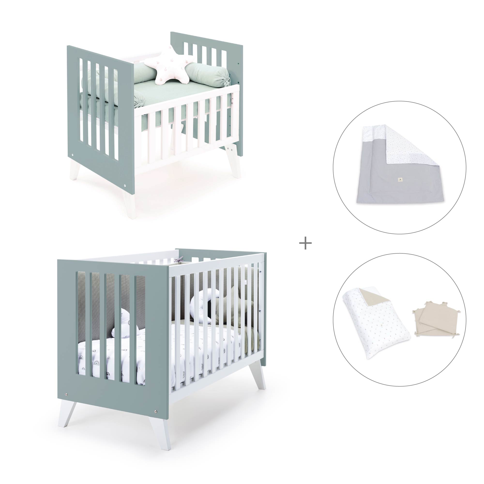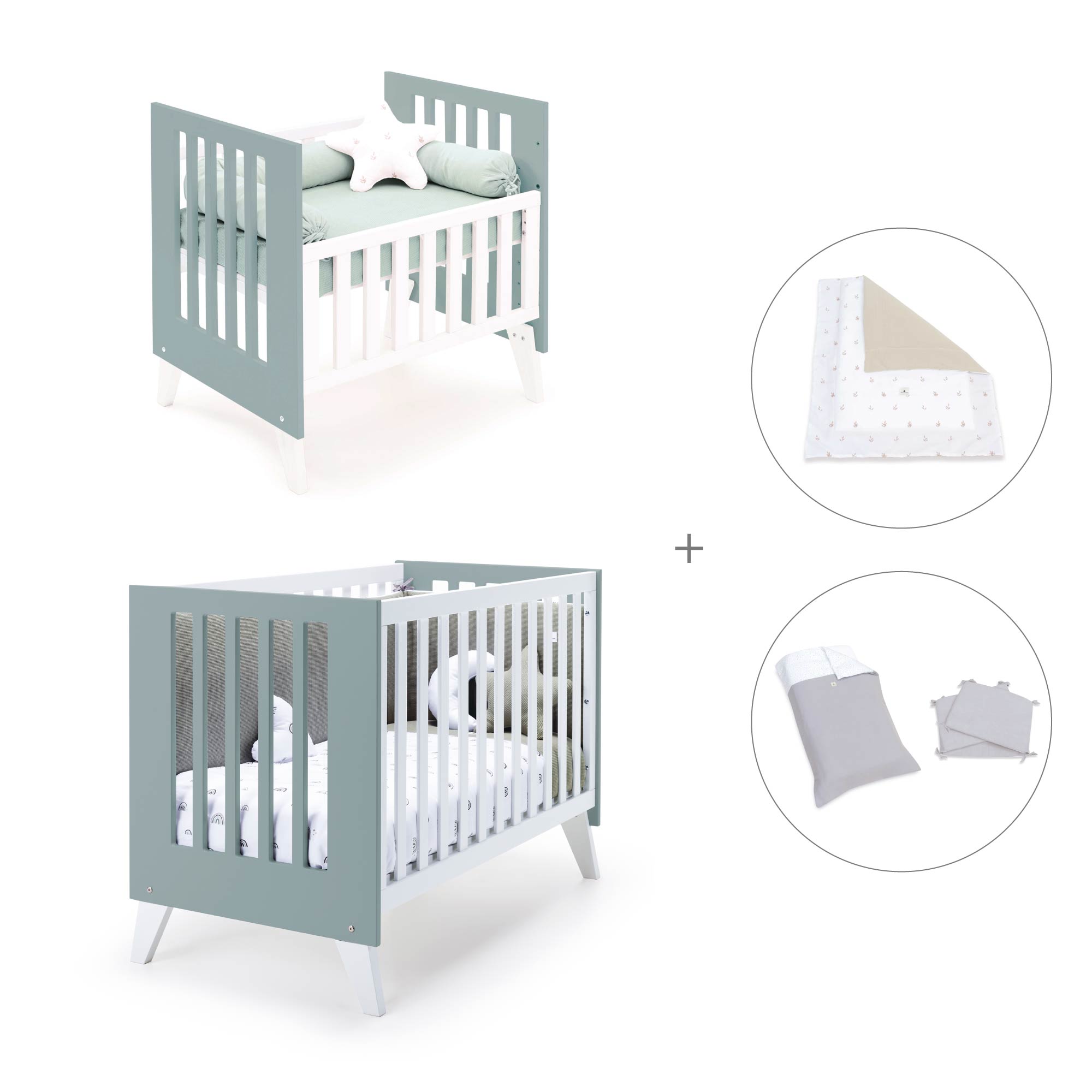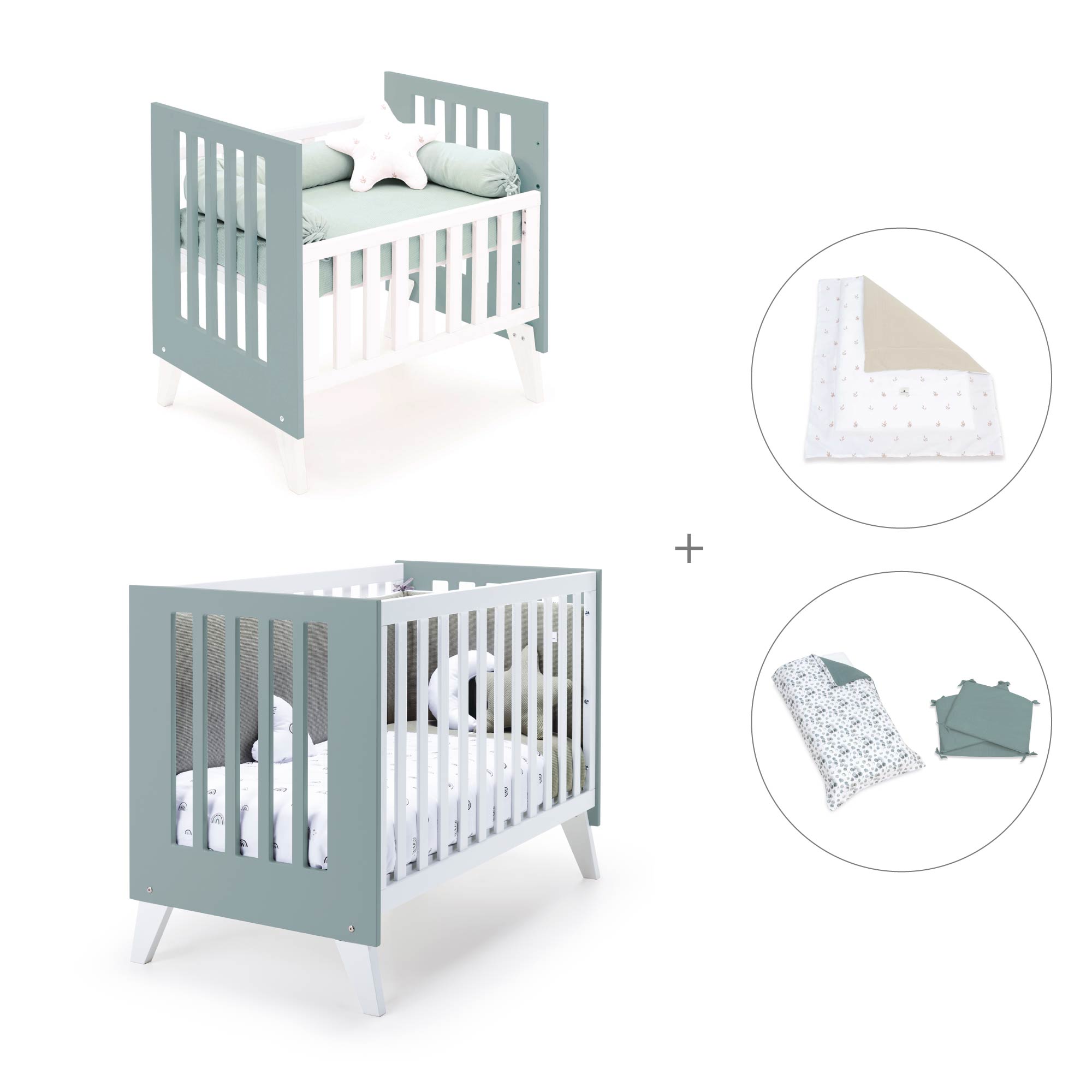Culla e lettino insieme (7in1) bianco/verde eucalipto · Nexo Tre Eucalyptus
