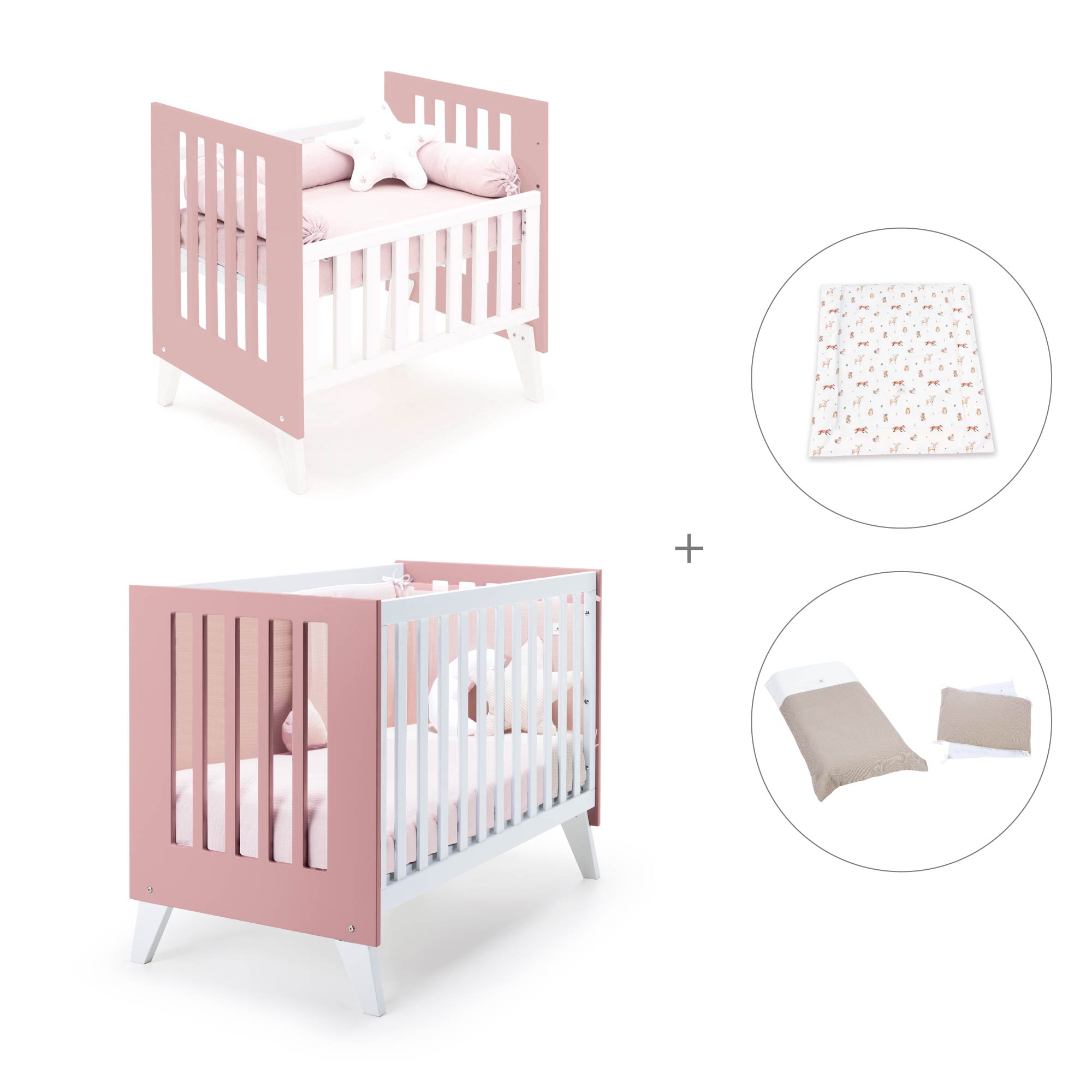 Culla e lettino insieme (7in1) bianco/rosa · Nexo Tre Quarzo