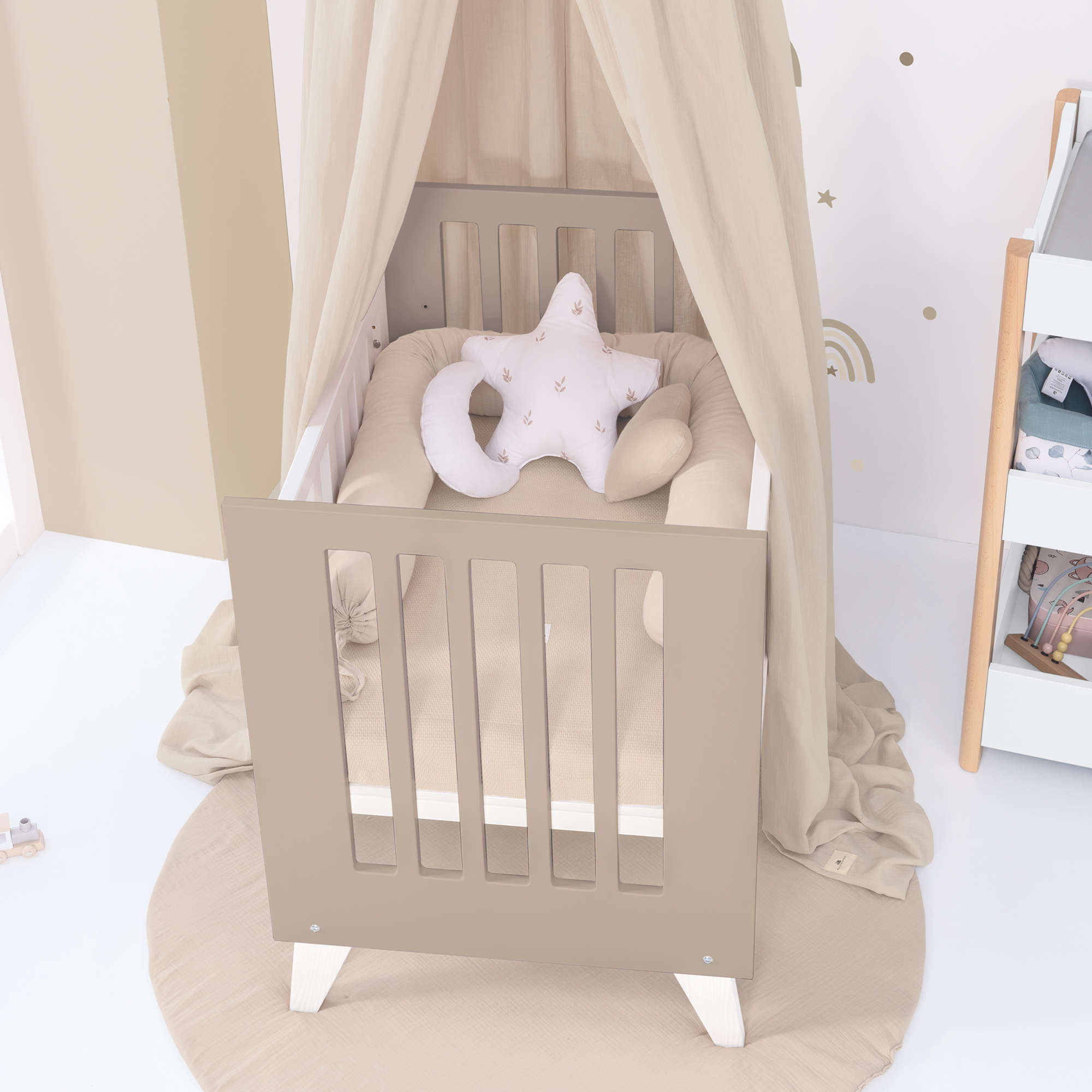 Durante i primi mesi del bebè, puoi trasformare la culla Nexo Uno in una pratica culla per il co-sleeping da 60x80 cm, semplicemente abbassando una delle sponde.