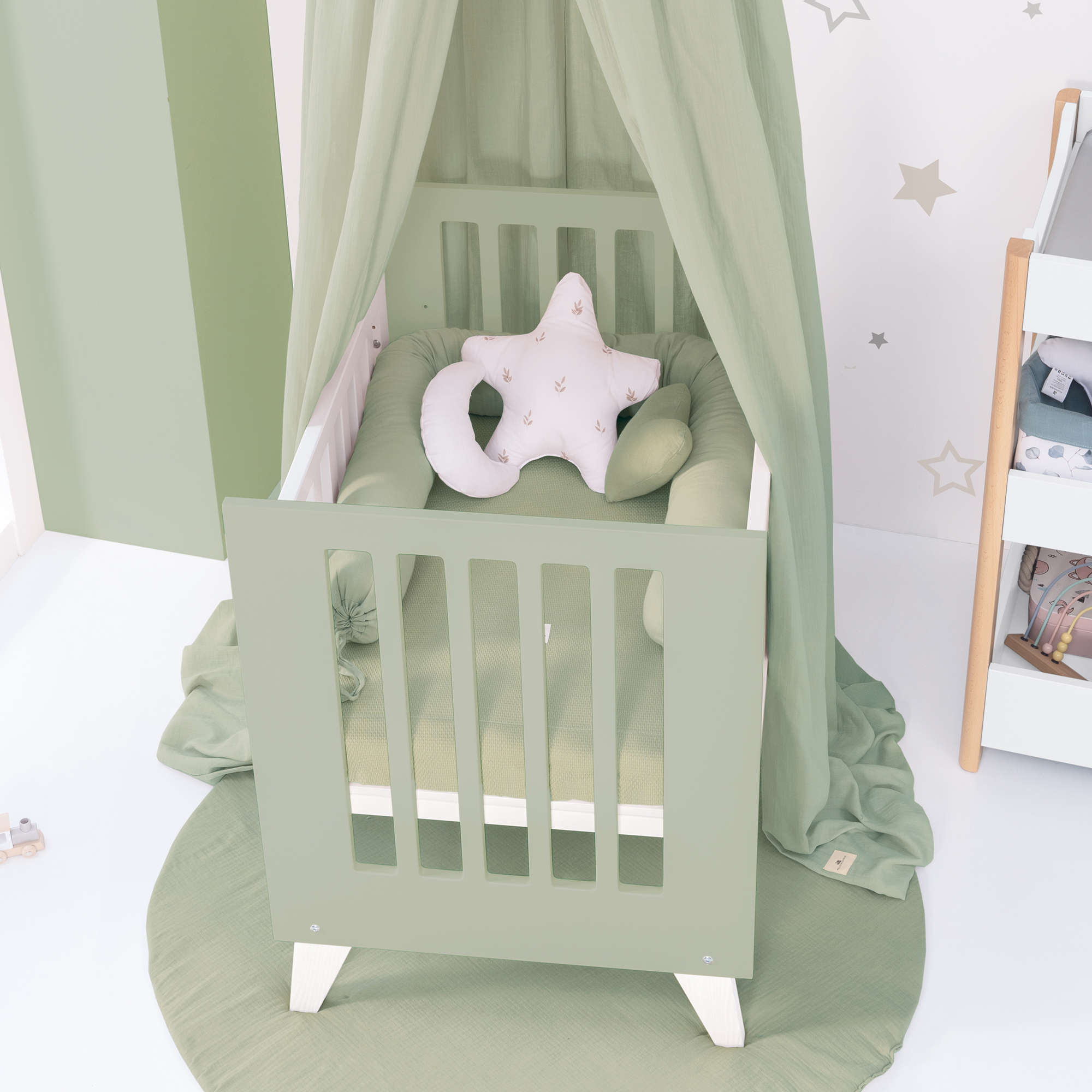 Culla 60x80 cm per co-sleeping (5in1) bianco/verde-oliva · Nexo Uno Erba