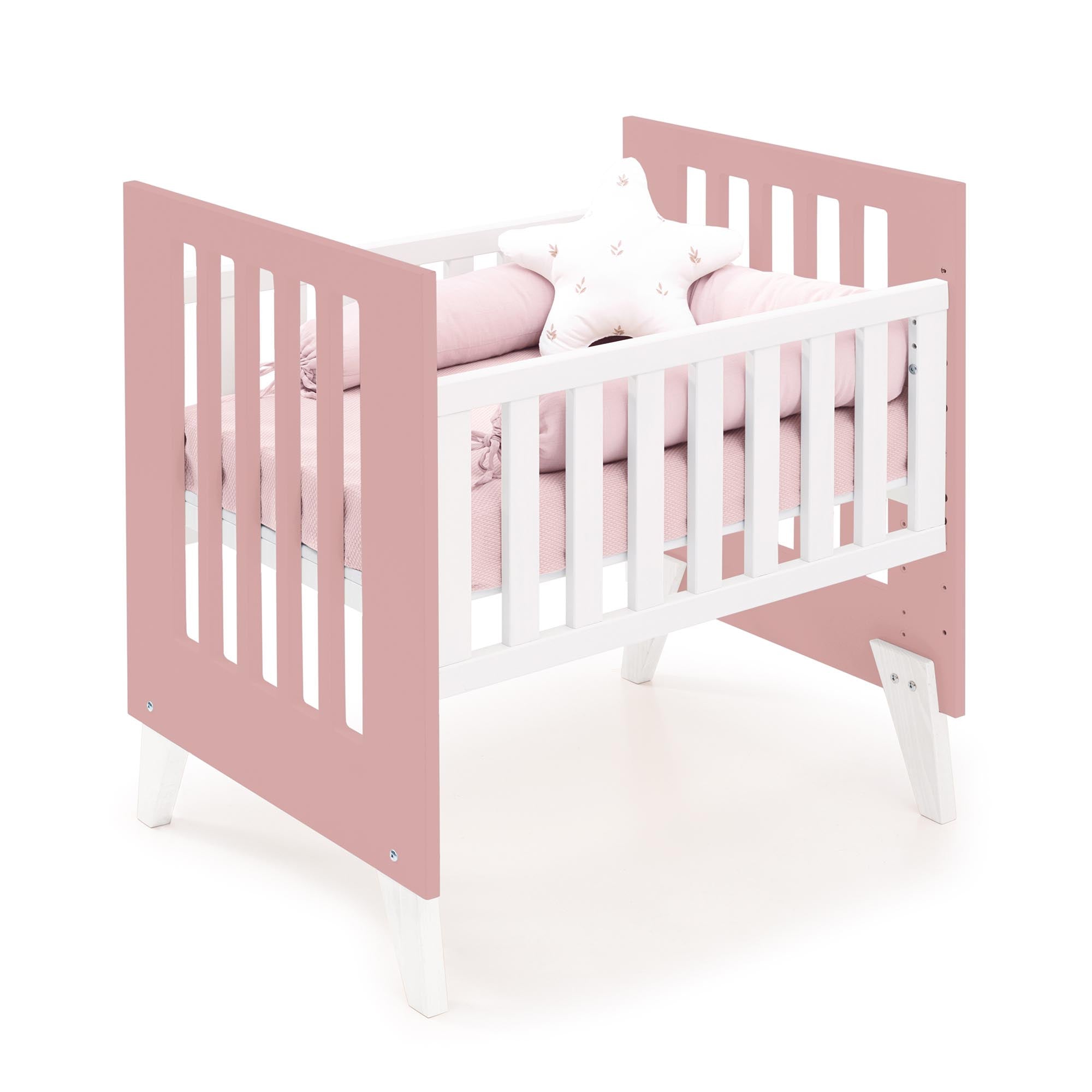 - La sponda della culla è regolabile su 3 altezze, dal materasso del letto dei genitori per la modalità co-sleeping (con ruote): 57,5 cm - 63,9 cm - 70,3 cm.