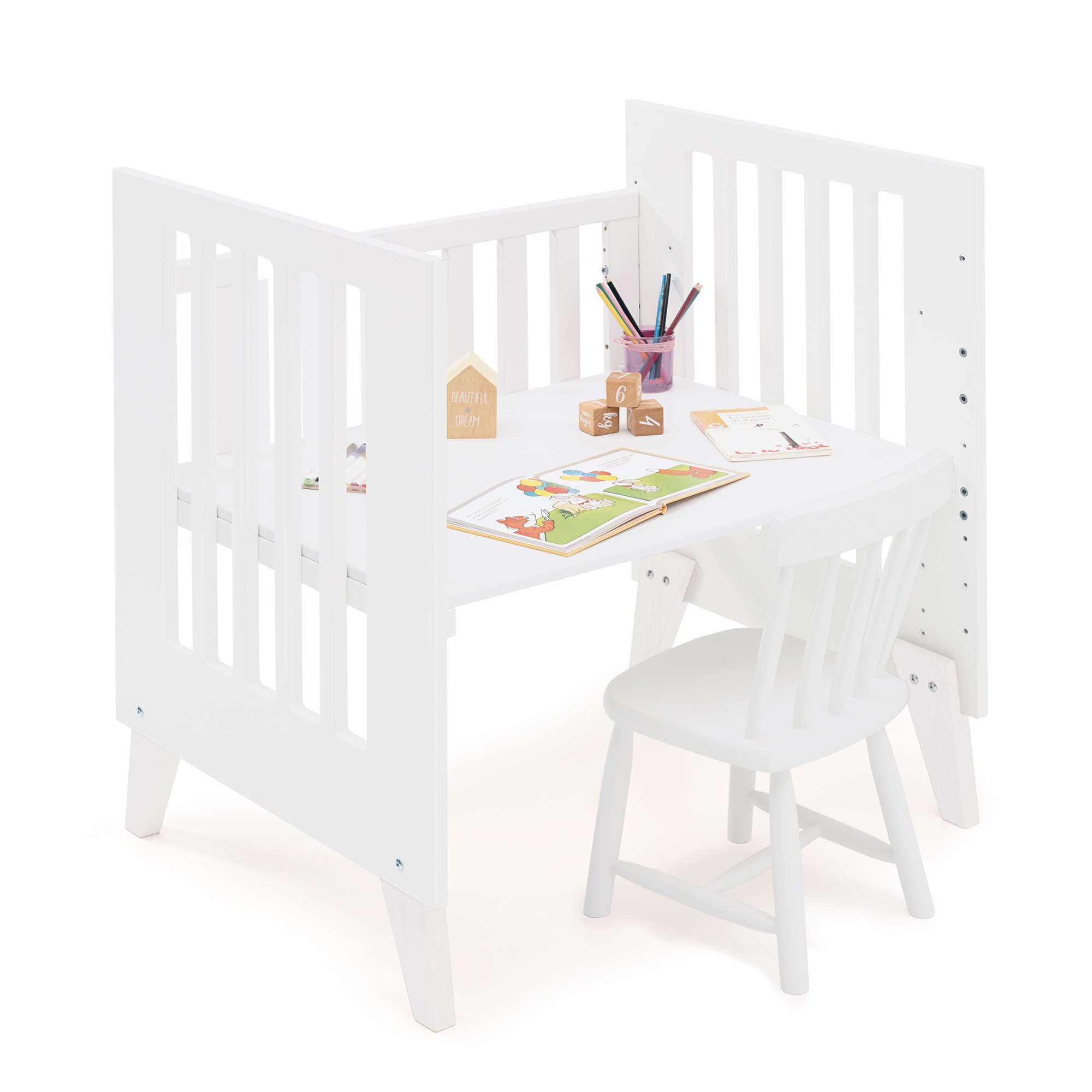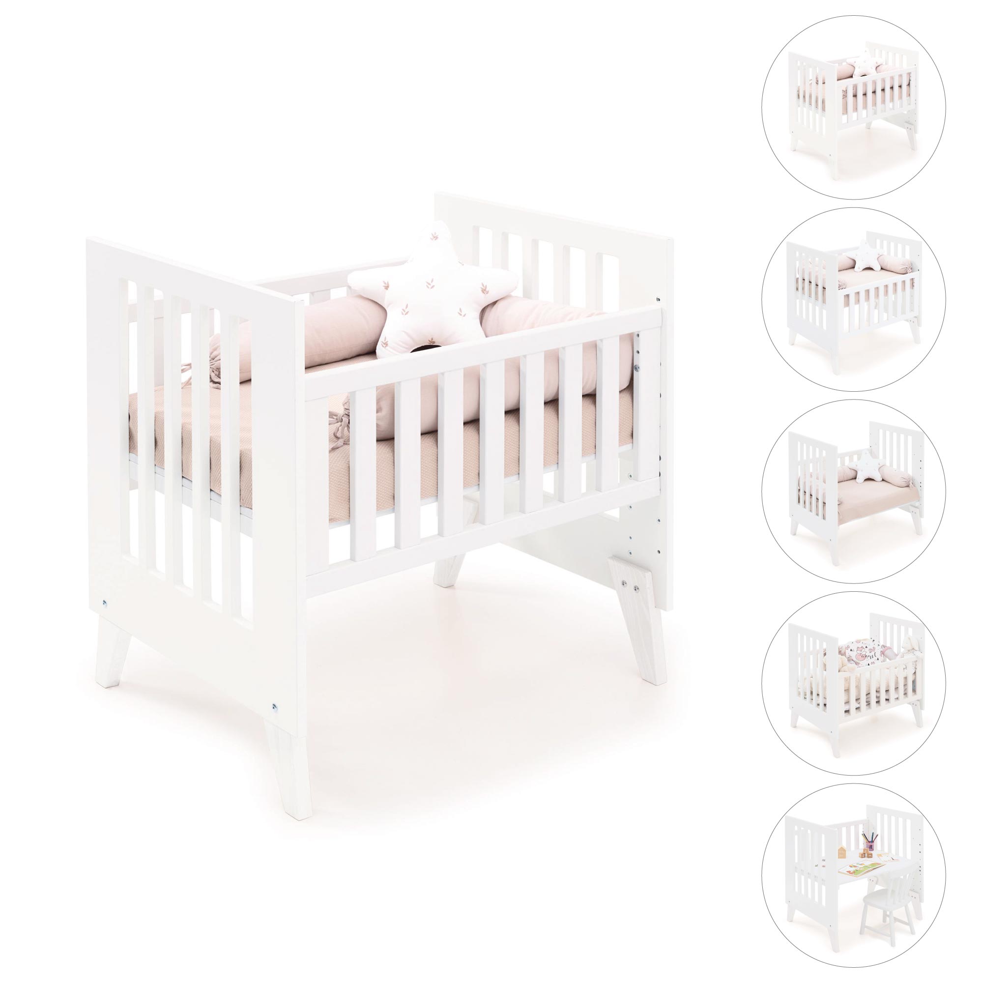• Trasformabile in 5 fasi senza elementi aggiuntivi: Culla co-sleeping - Culla - Divanetto - Scrivania - Portagiochi.