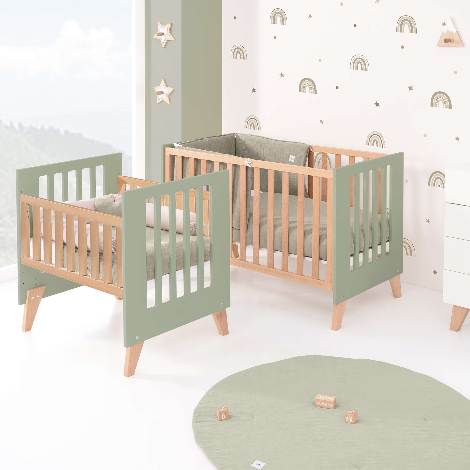 Culla trasformabile in lettino (7in1) legno/verde-oliva · Nexor Tre Erba