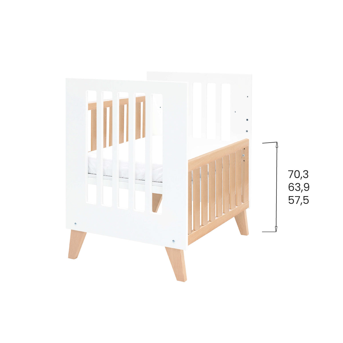 Si quieres seguir practicando colecho con tu bebé, te damos la opción de convertir la cuna en cuna de colecho 60x120 cm, adquiriendo el kit de colecho opcional (ref. WCO180-M70).