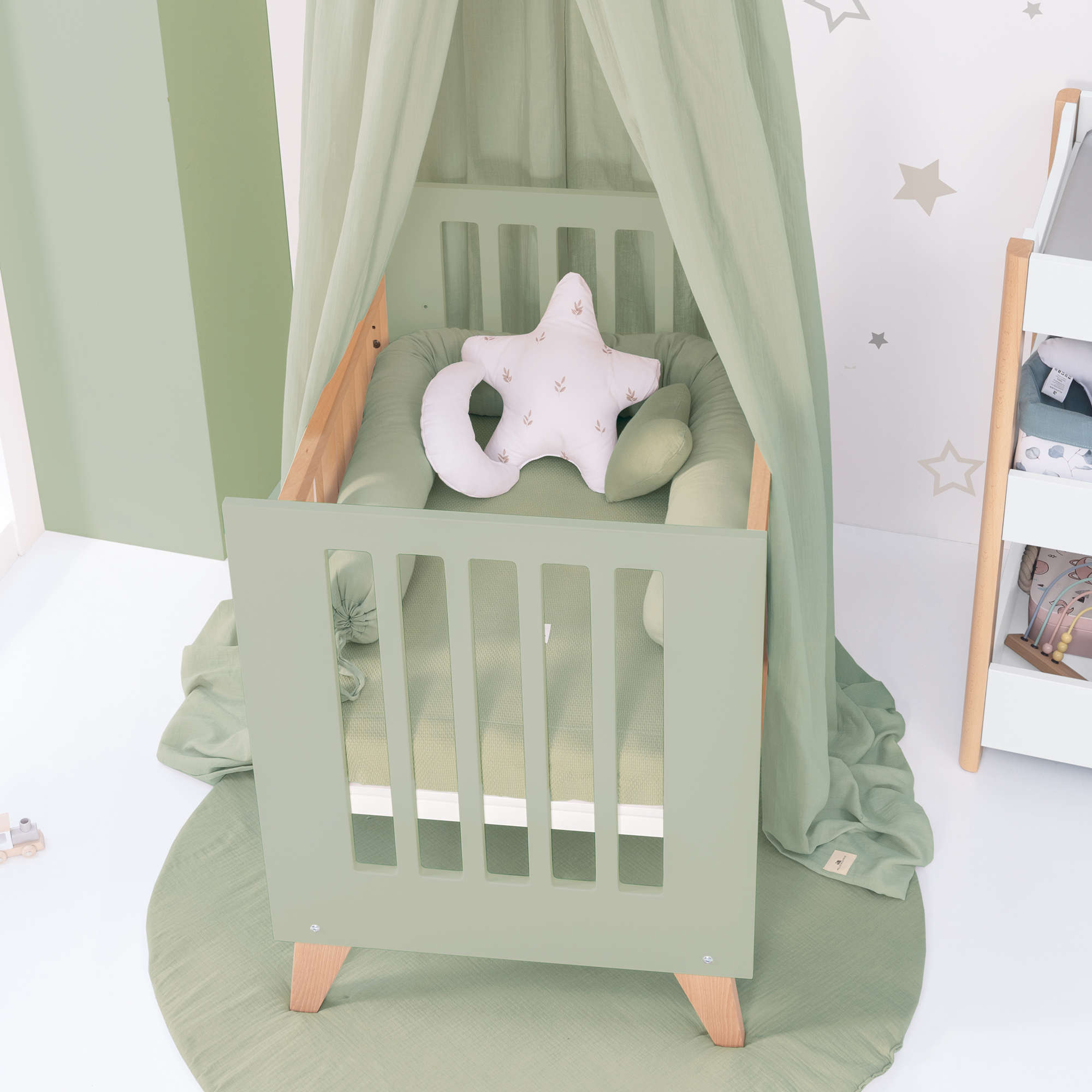 Culla co-sleeping 60x80 cm (5in1) legno/verde-oliva · Nexor Uno Erba