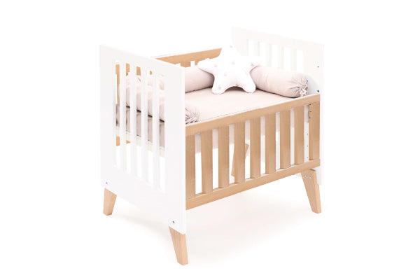 Durante los primeros meses del bebé, podrás convertir la minicuna Nexor Uno en una práctica minicuna de colecho de medidas 60x80 cm, simplemente bajando una de las barandillas.