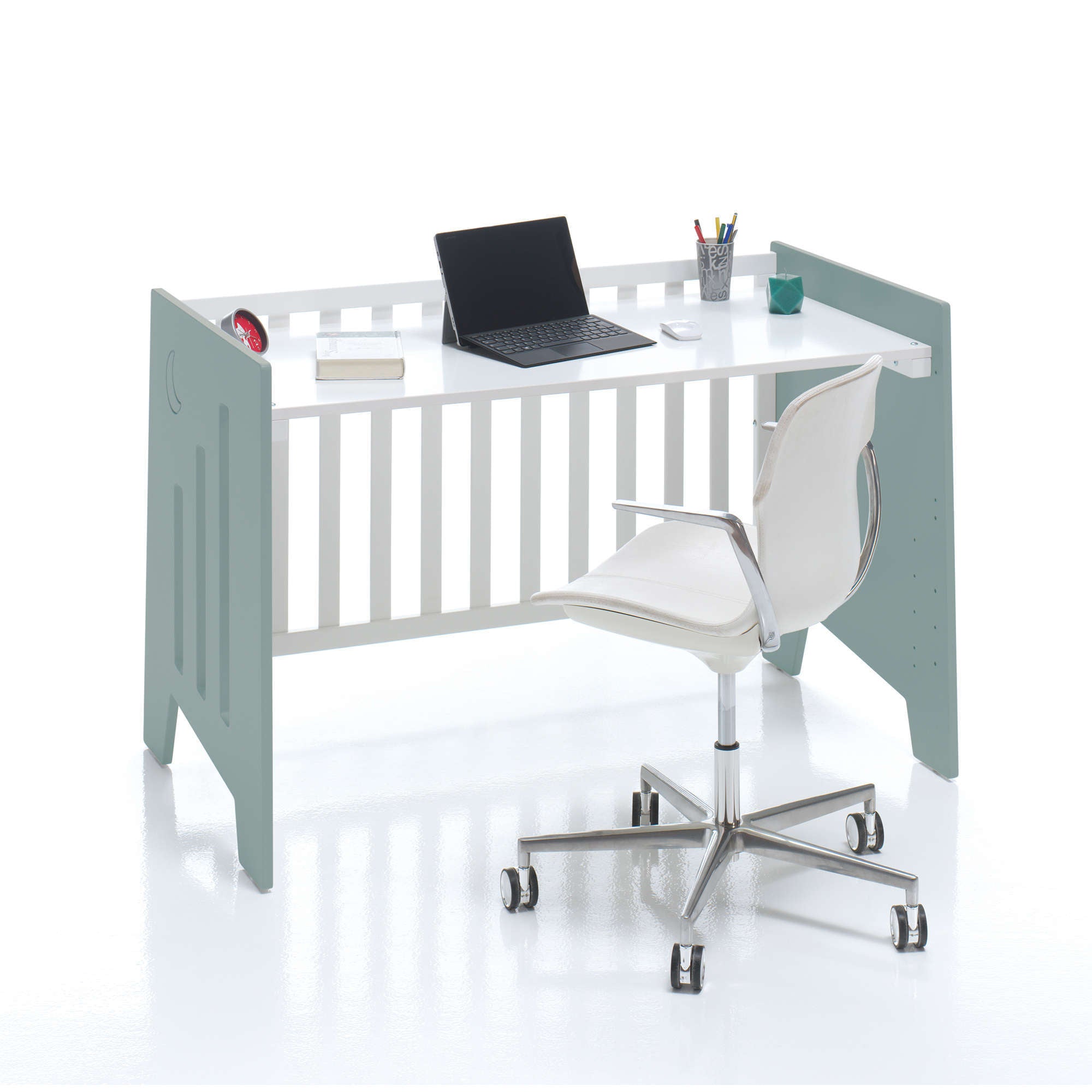 Simplemente debes quitar la barandilla lateral, subir el tablero somier a la altura más elevada y quitar las ruedas. Y, así, ya dispones de un práctico escritorio infantil que tu hijo o hija podrá usar durante mucho tiempo. ¡Es super funcional!