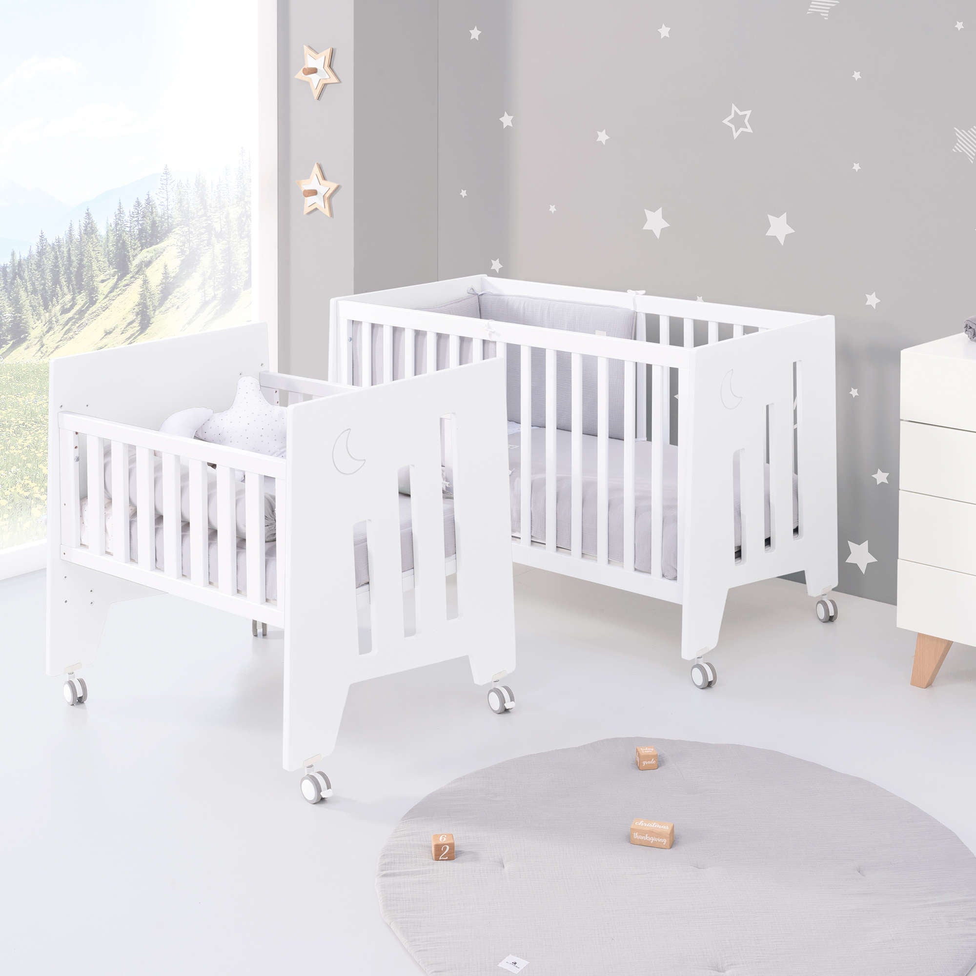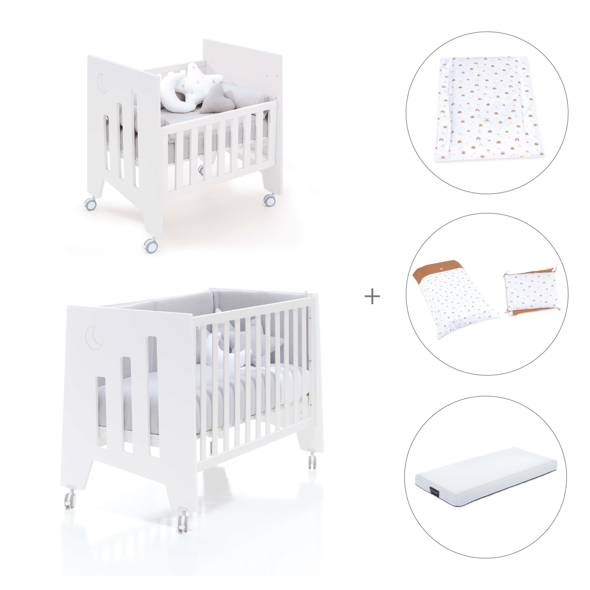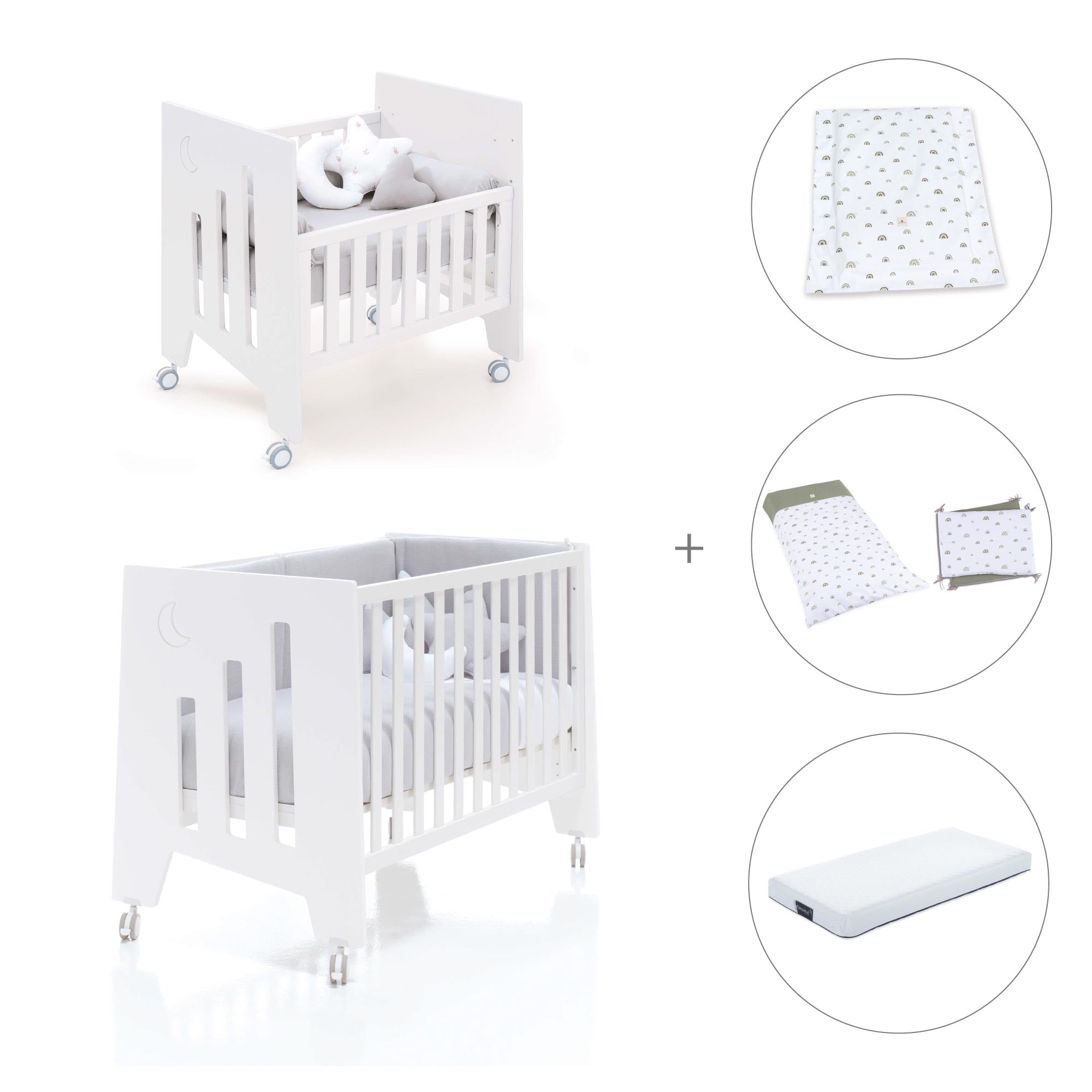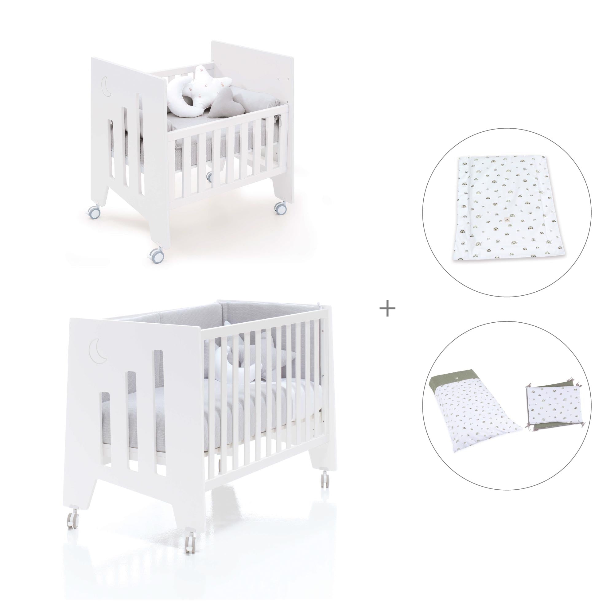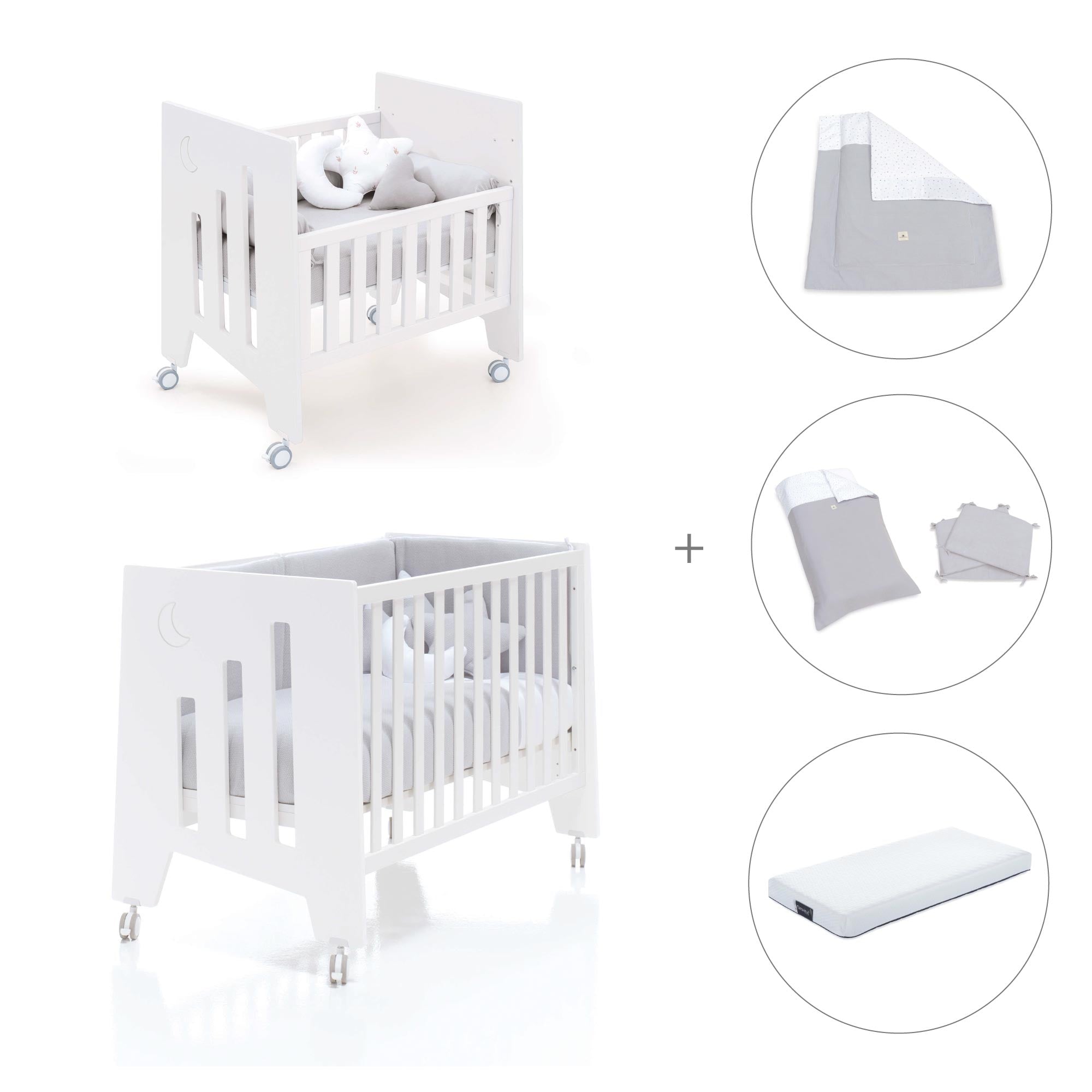Una vez el bebé crezca y la minicuna se quede pequeña, puedes convertir la minicuna en una cuna de 60x120 cm, gracias al kit de conversión que incluye.