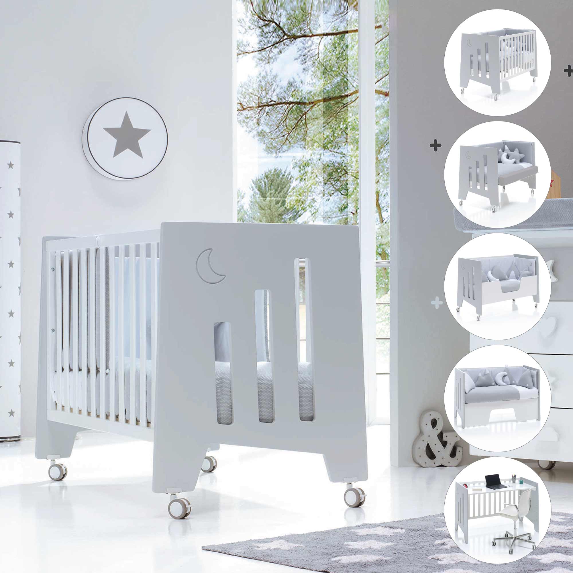 Una volta terminata l’esigenza del co-sleeping, basta ricollocare la sponda al suo posto e fatto! Come nella fase precedente, sono disponibili 5 posizioni della rete da utilizzare in base all’età e alla crescita del bimbo. Una volta il bimbo sia in grado di alzarsi in piedi autonomamente, in base alla normativa europea sui lettini per bambini, per la sua sicurezza la rete andrà posizionata nella parte più bassa del lettino.