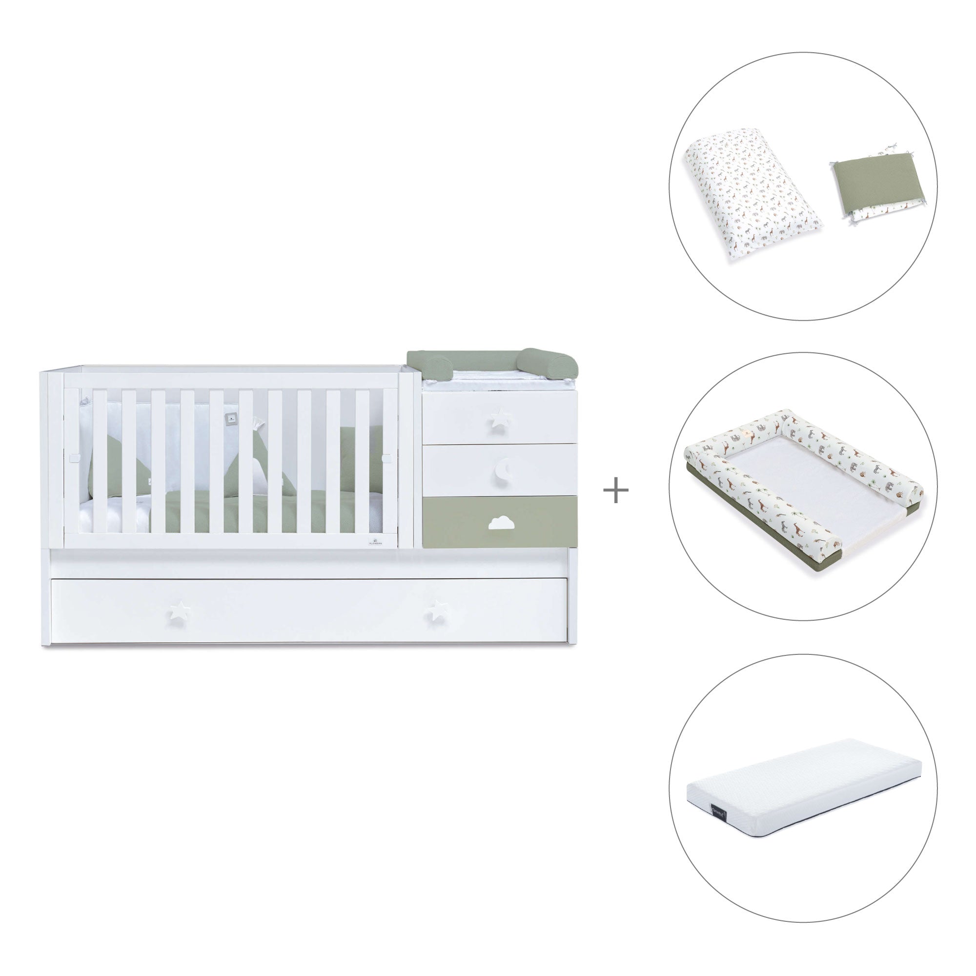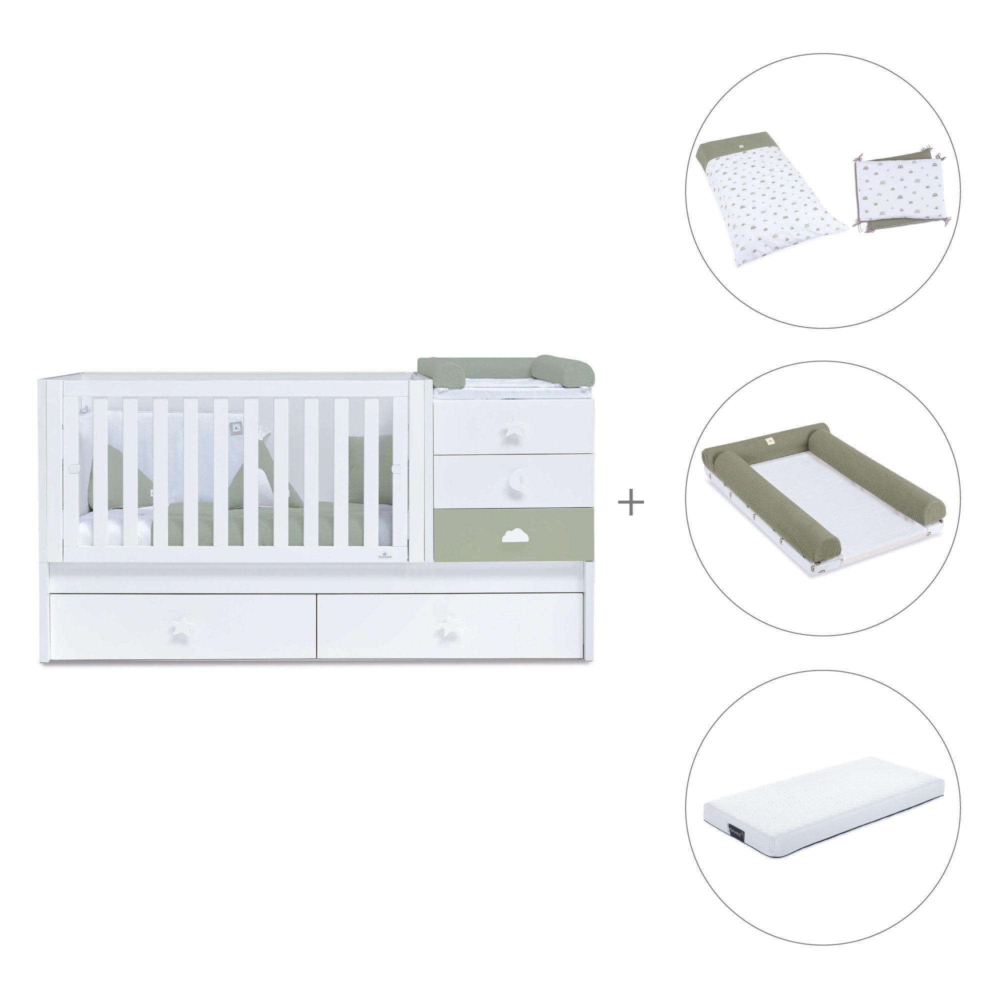 Con questo modello di culla trasformabile ottieni tutto questo in un unico mobile: