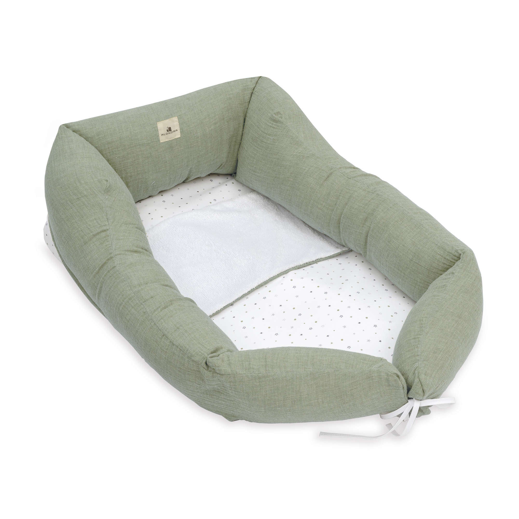 Utiliza el nido colecho durante los primeros meses de vida del recién nacido (de 0-3 meses), para tenerlo recogido y seguro, ya sea en la cuna para colechar, en la cama o en el sofá.