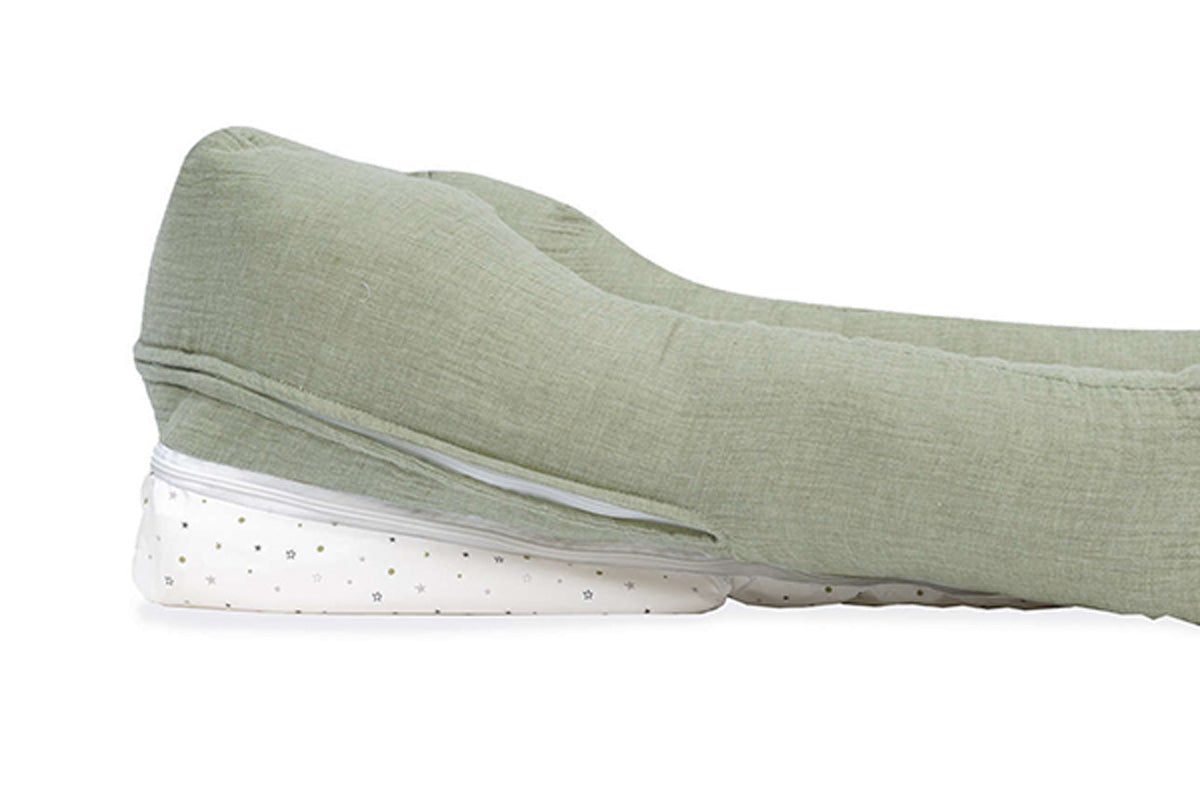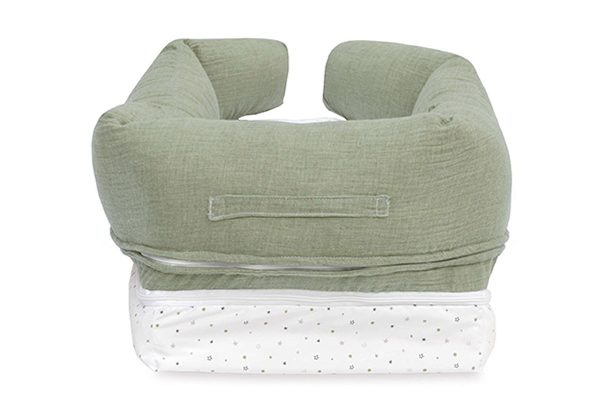 El nido también se puede utilizar como cojín de lactancia, para dar de comer al bebé, simplemente retirando el churro lateral (con cremallera).