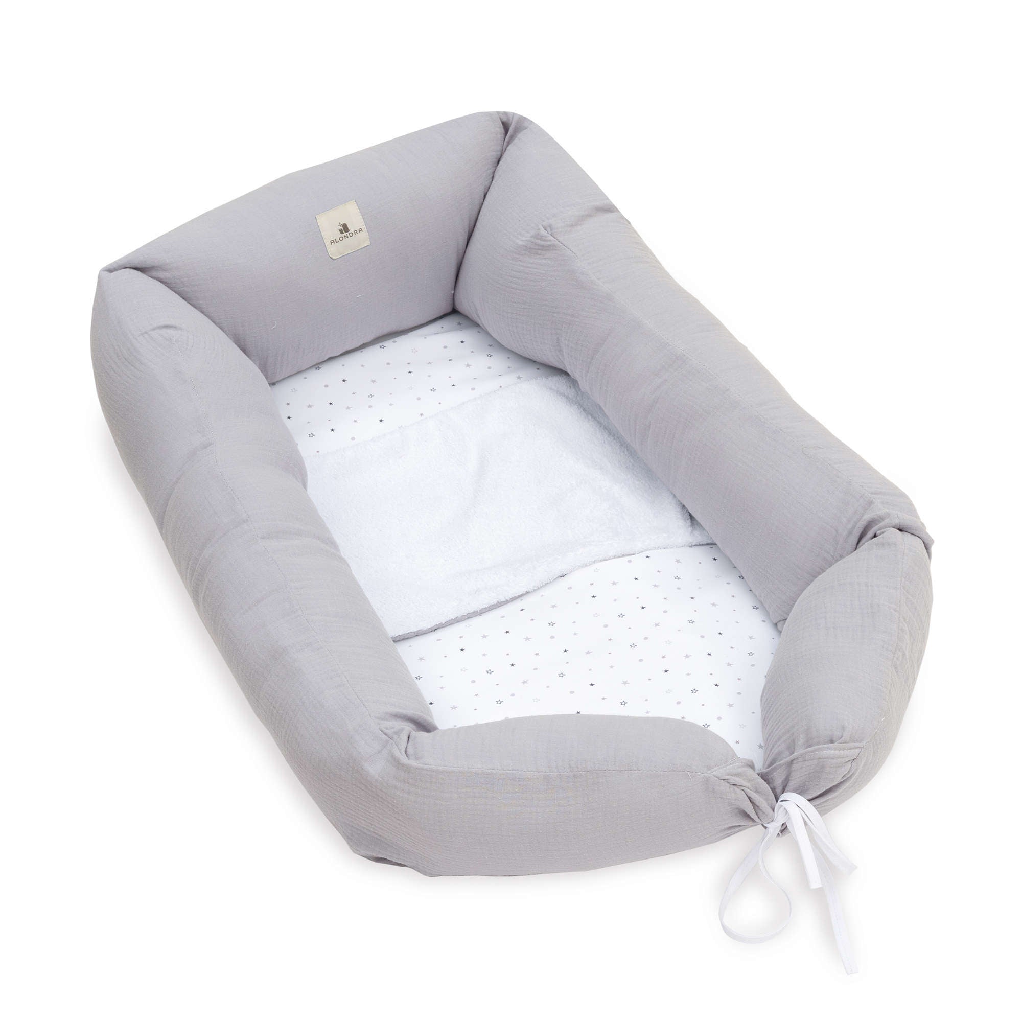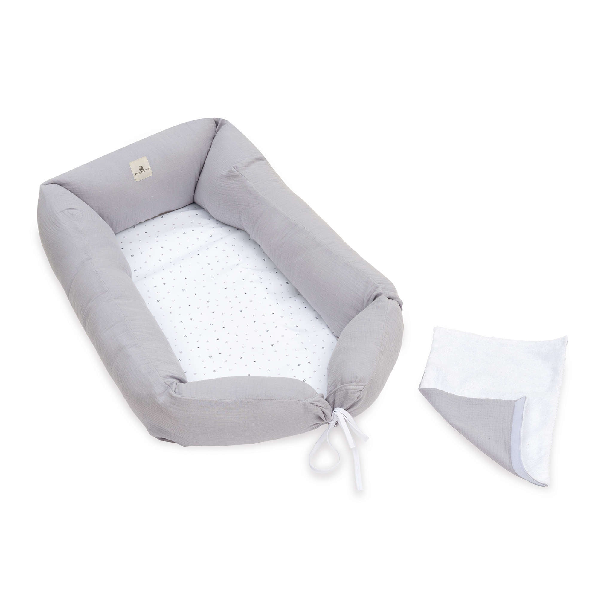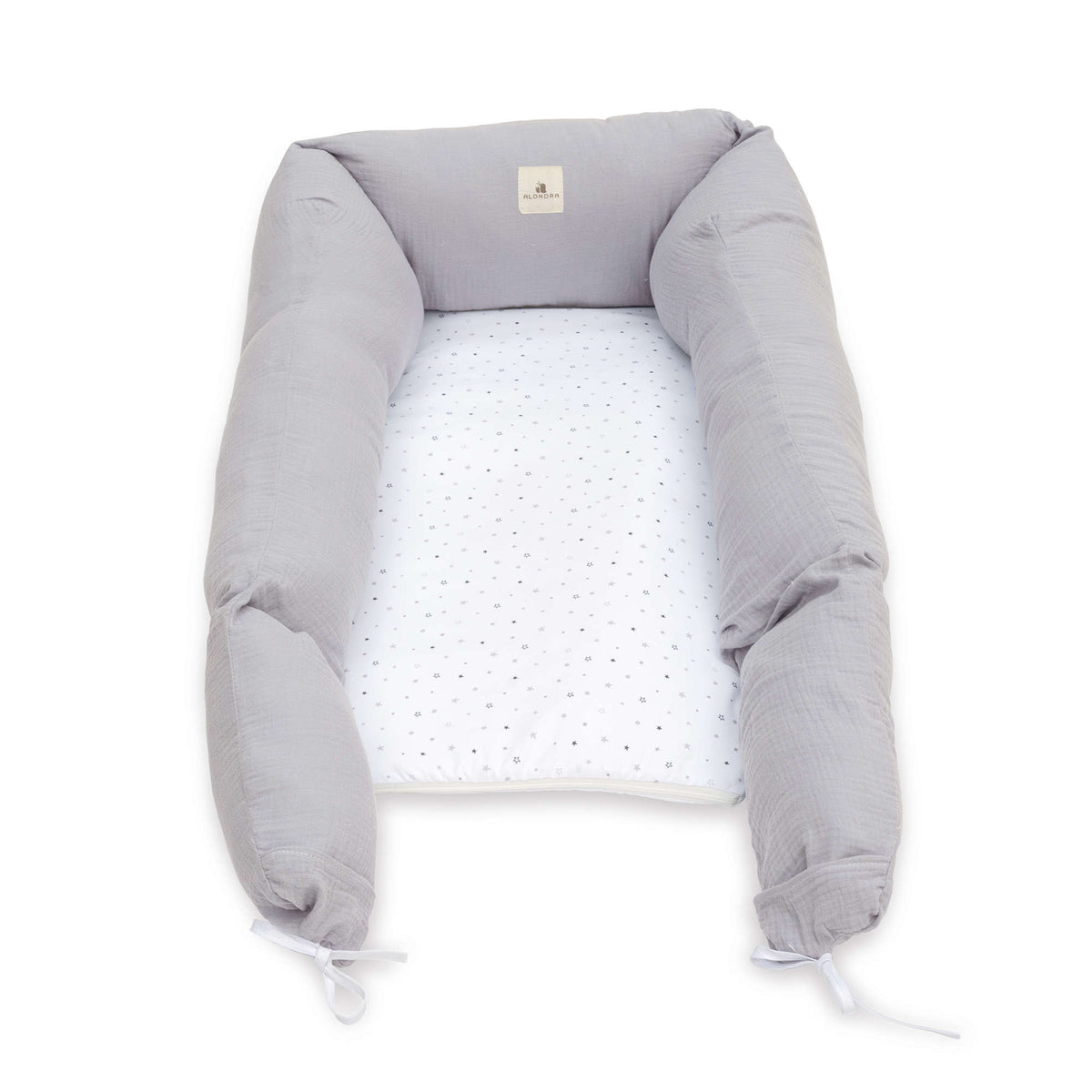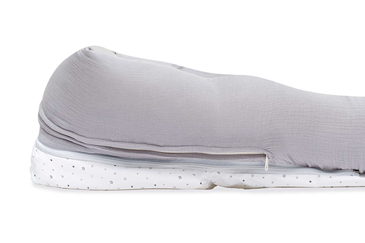 El nido también se puede utilizar como cojín de lactancia, para dar de comer al bebé, simplemente retirando el churro lateral (con cremallera).